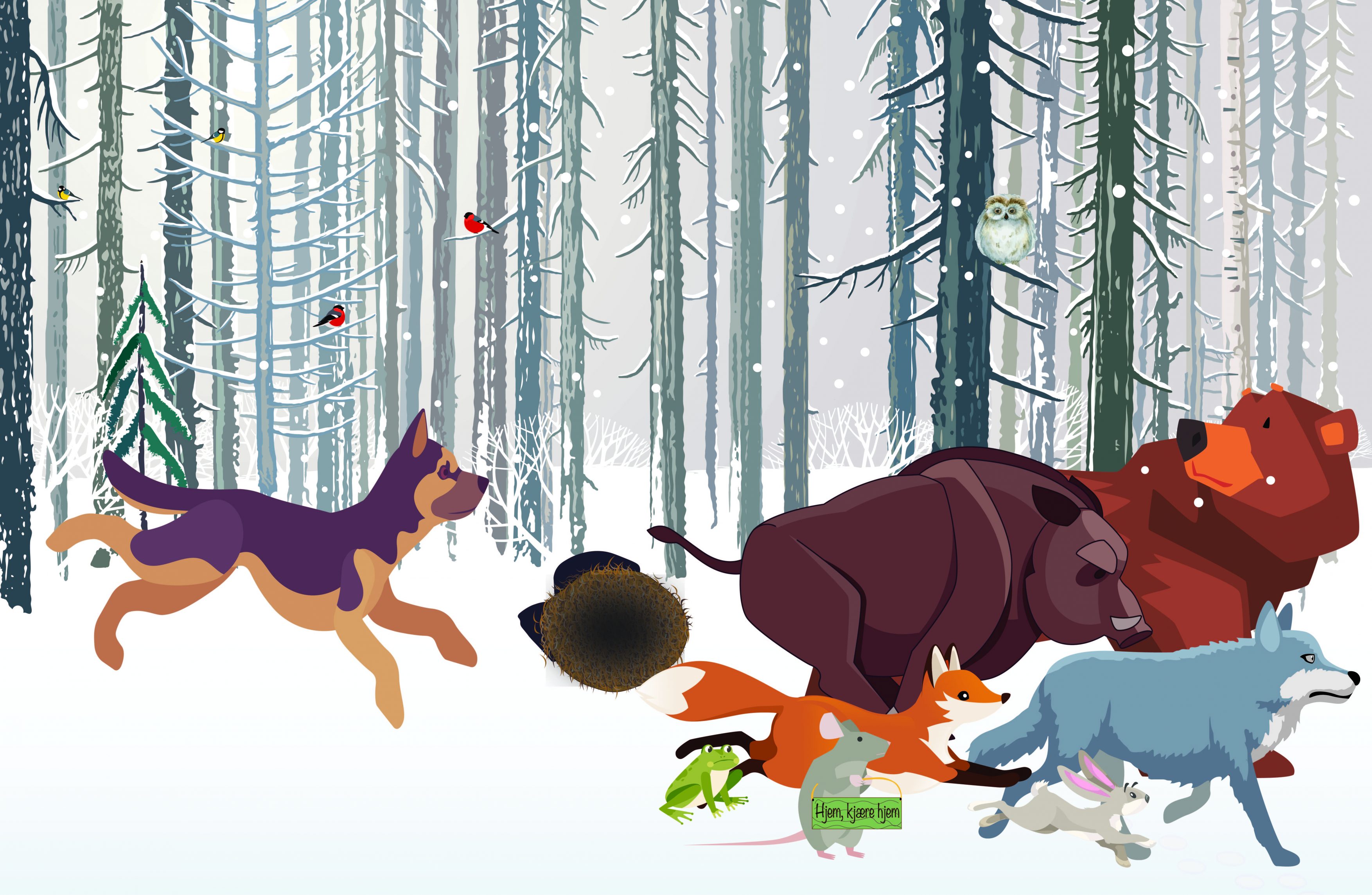 Alle dyrene sprang ut av votten og ble borte i skogen.