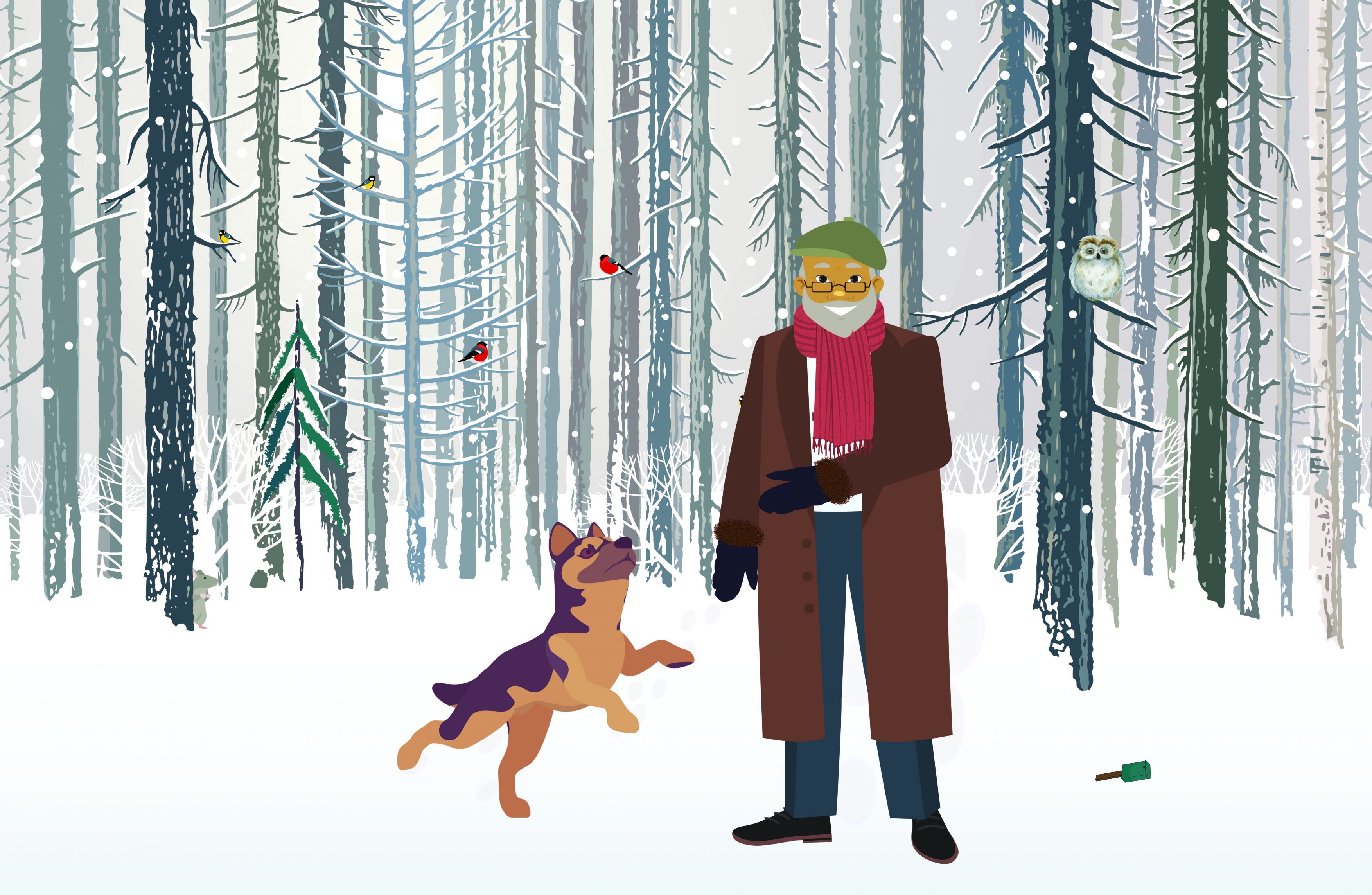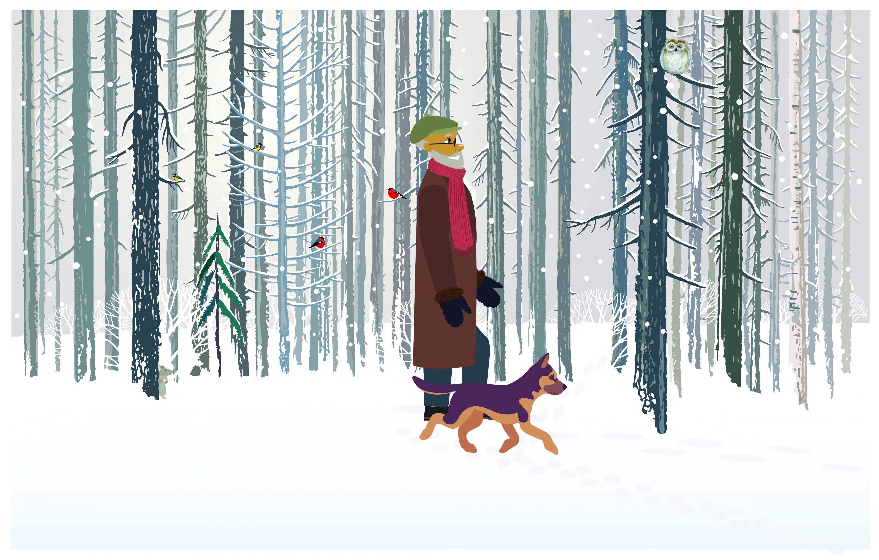 En kald vinterdag gikk han tur med hunden sin gjennom skogen.