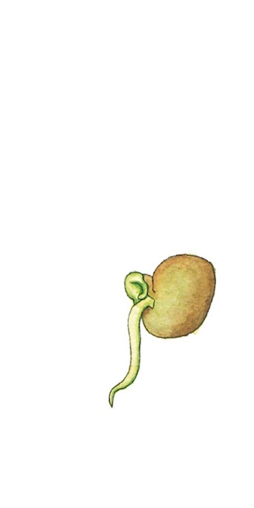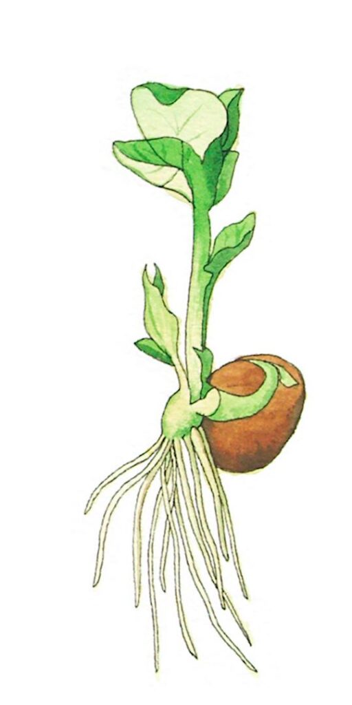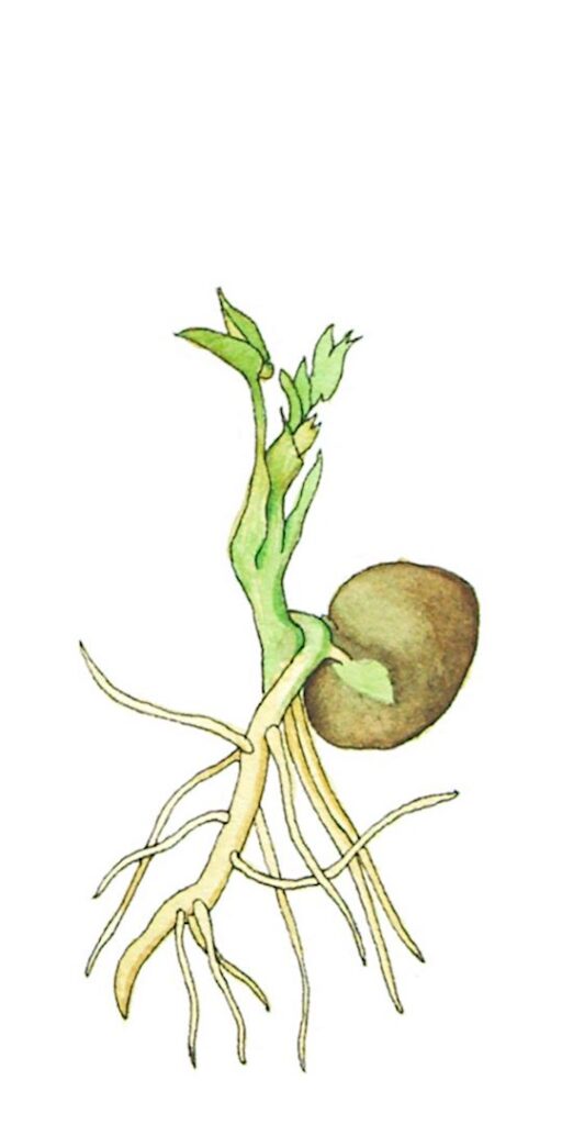 Dette gjør at kimen inni frøet får energi til å vokse. Vi sier at frøet spirer.
